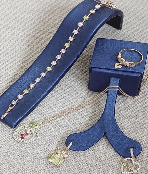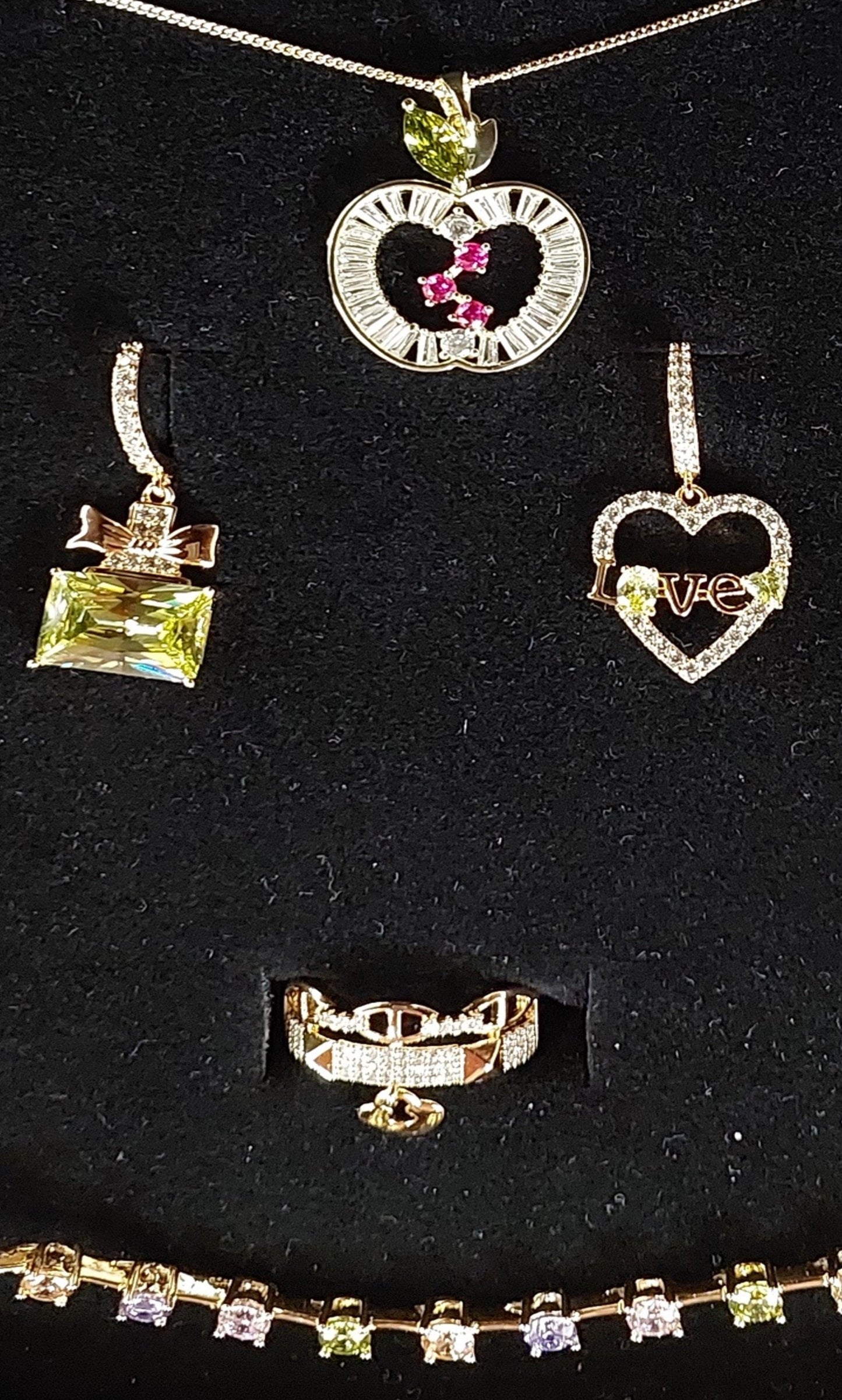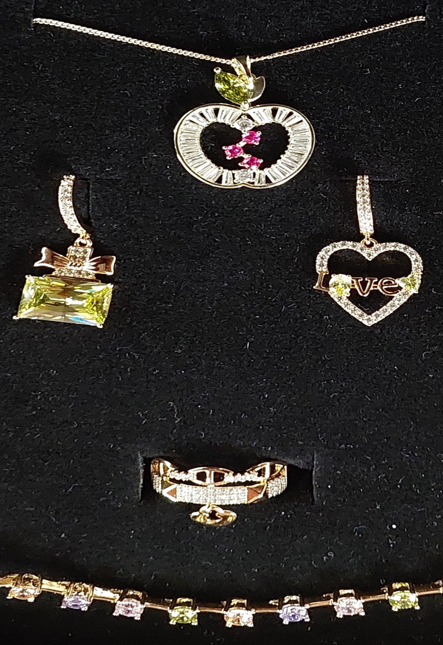 Great Gift Jewellery Set of 4 pieces = 1 Bracelet ,1 Necklace ,1 Earrings Set  (the Ring  Gold Plated Colour White Zirconia Heart shape available in size 7 and size 8)  ,