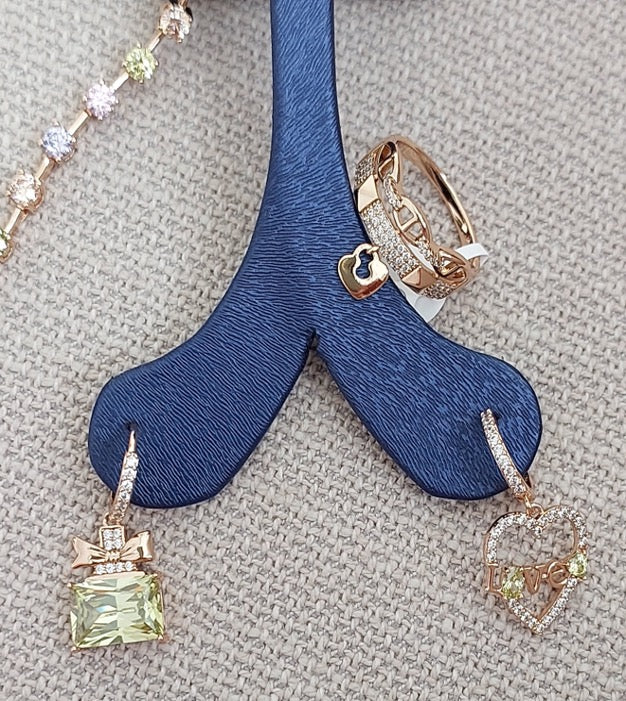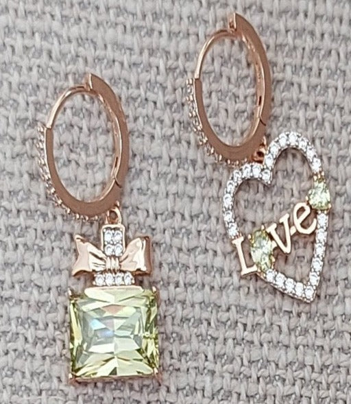 Earrings SET  assymetric one heart love shape ,the second is made with amint green diamond Zirconia made of environmental copper plated with 18k gold colour, and cubic zirconia 3AAA stud .