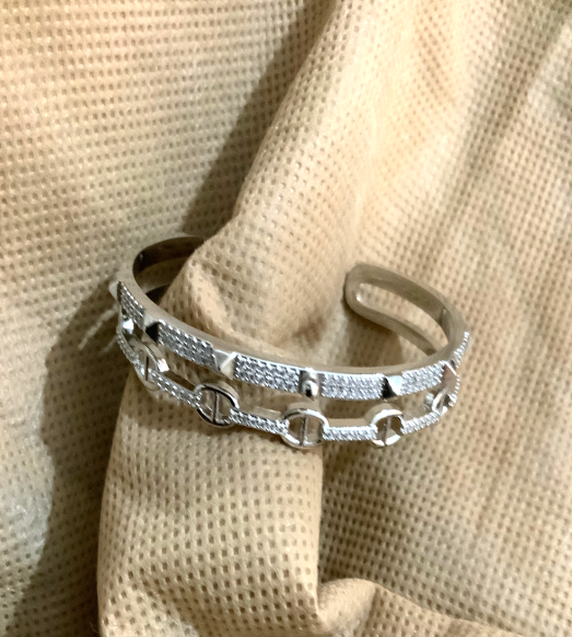 Bangle Bracelet Cuff Cubic Zirconia White Gold Color Adjustable, one size fits all size, made of environmental copper plated with white gold, and cubic diamond zirconia 3AAA, lead and nickel free,