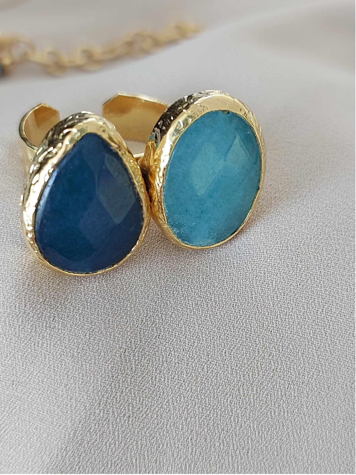 Jewelry Set  Double layer Necklace Bracelet Ring Earrings Handmade Gemstones Blue Apatite Stones Great for Gifts 4 pieces in a box, made of environmental Brass, plated with 18K gold color, necklace is double layered in Blue apatite stones . all measurements are variable. Handmade items.
