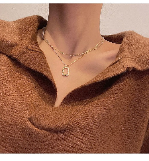 Collier Pendentif Carré Double couche Acier Inoxydable Ensemble 2 pièces